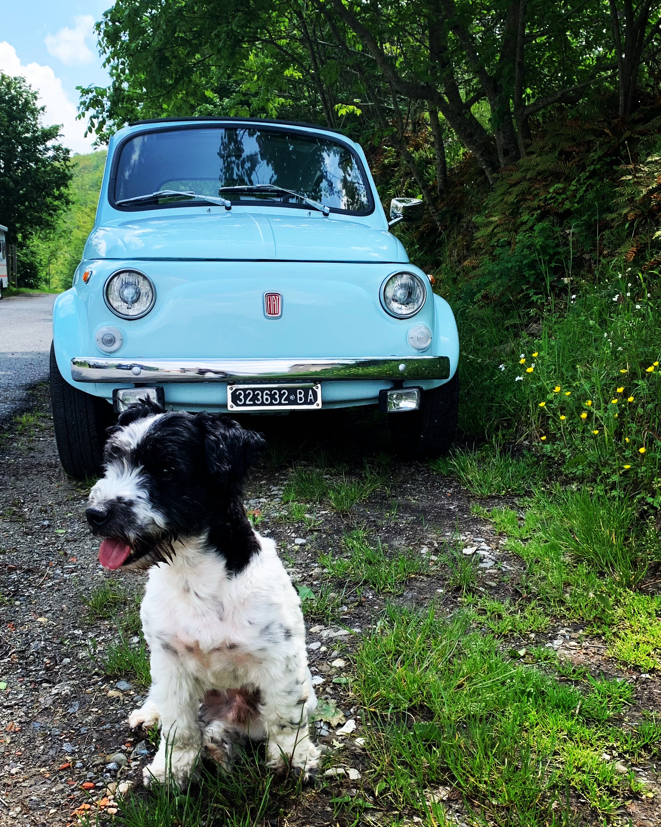 P.S – I have a lovely dog called Paffy and the cutest vintage Fiat 500 from 1972! (see photos below)